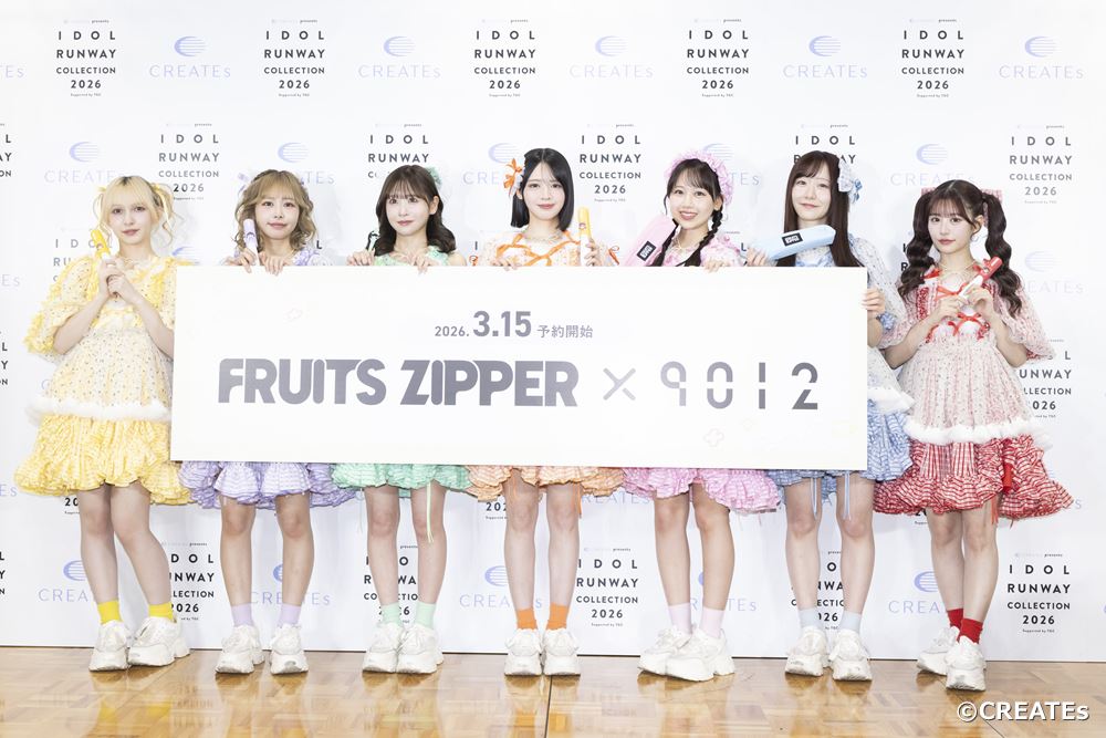 アイドルグループ FRUITS ZIPPERが15日、国立代々木競技場 第一体育館で開催された『CREATES presents IDOL RUNWAY COLLECTION 2026 Supported by TGC』(以下、CREATES presents IRC 2026)に登場し、ヘアケア家電メーカー「CREATEs(クレイツ)」とのコラボレーションステージを披露した。会場では、FRUITS ZIPPERと同メーカーのコラボレーションアイテム「9012 イオンコードレス ストレートアイロン」限定セットが初公開された。