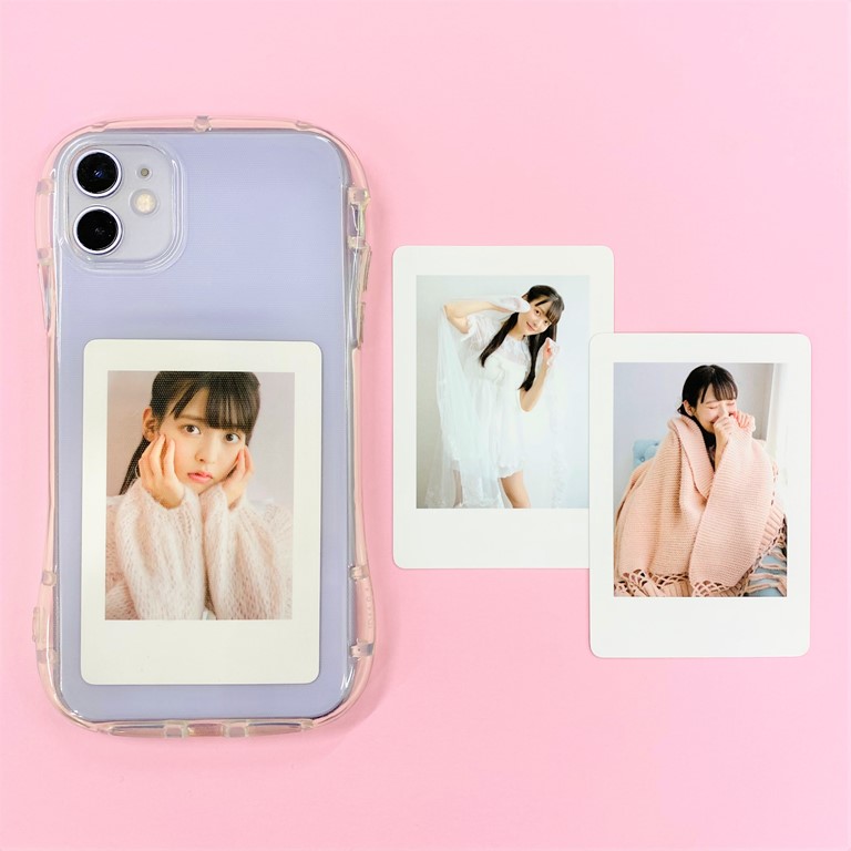 「卓上 上坂すみれ 4月始まりカレンダー」を対象ショップて予約した人にはチェキ風カードを1枚プレゼント。スマホケースに入るサイズのチェキ風カードは、どこでも持ち運べるのが魅力だ。絵柄は全3種。どれもとってもキュートな表情を切り取っている