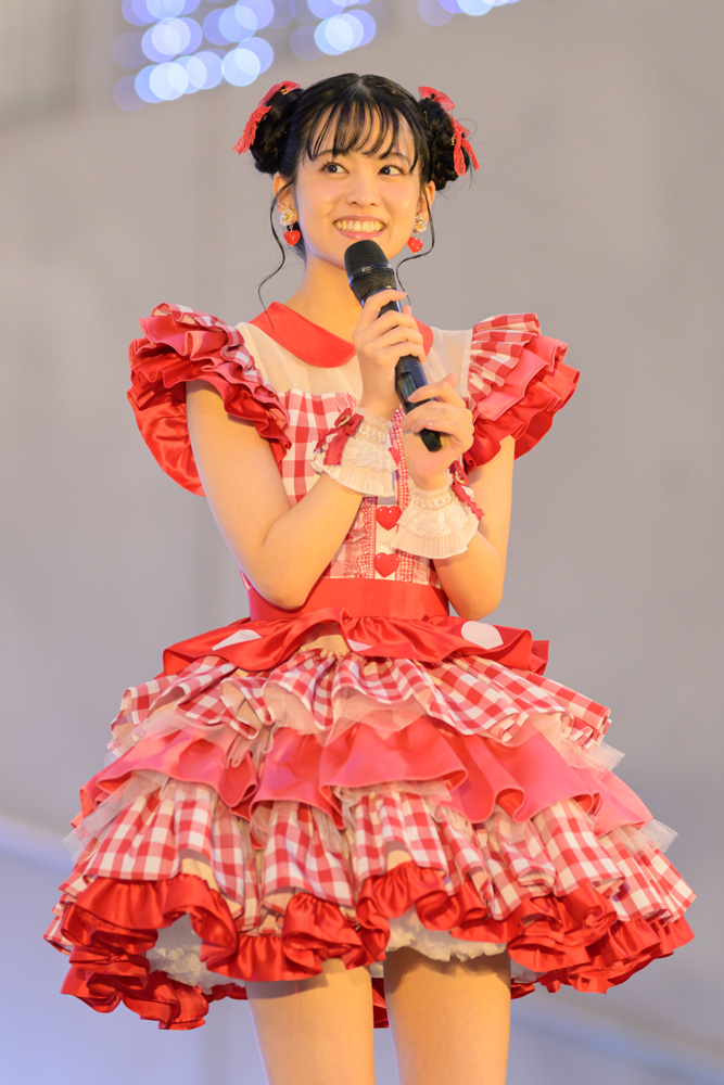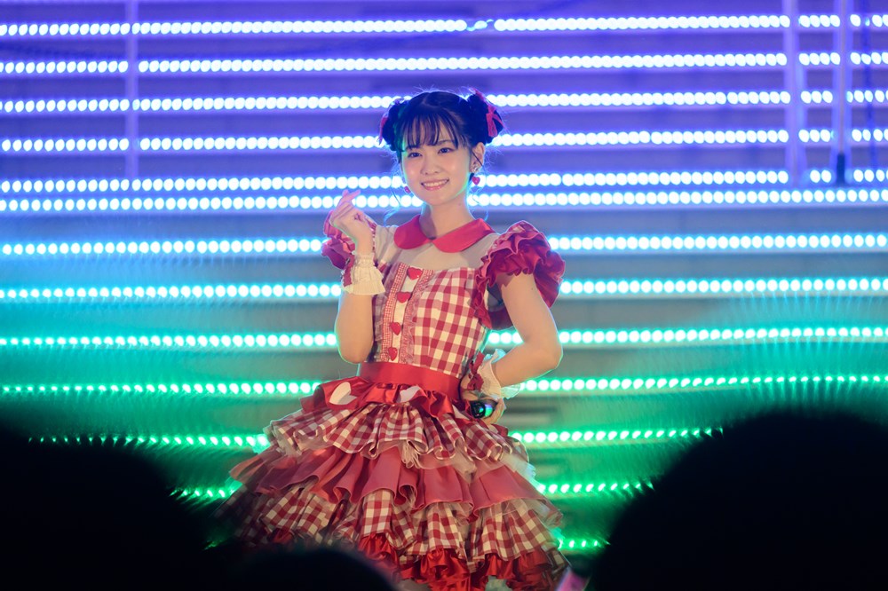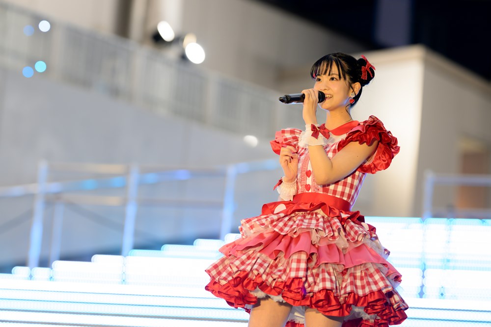 MCでは「今日が初披露になるので、すごく緊張しているんですけど、みなさん準備はいいですか?」と言ってから両A面シングルのもう1曲『指先ハート』を歌っていく。指先でハートを作ったり、大好きの気持ちをみんなに送っていくキュートなダンス。歌詞に合わせて表情豊かに歌っていく姿もかわいらしかった。ファンも“(Love you)”の大きなコールを送り、曲を盛り上げていた。
