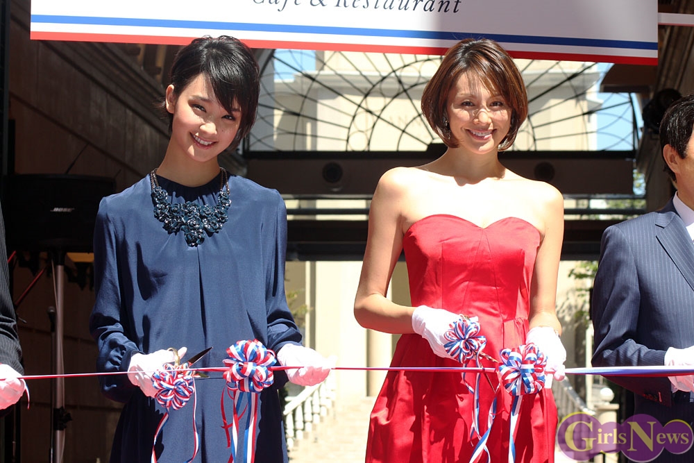 米倉涼子と剛力彩芽が「アニヴェルセル カフェ&レストラン」のテープカットセレモニーに出席!