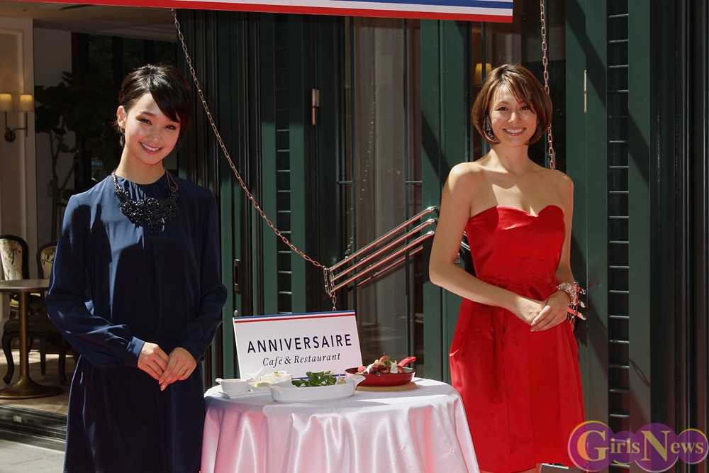 9月18日、女優の剛力彩芽さんと米倉涼子さんが、表参道駅近くの『アニヴェルセル カフェ&レストラン』で行われたリニューアルオープン記念イベントに出席し、テープカットセレモニーに参加した。