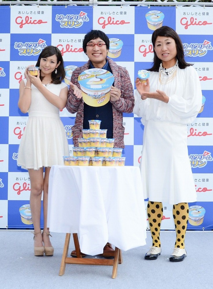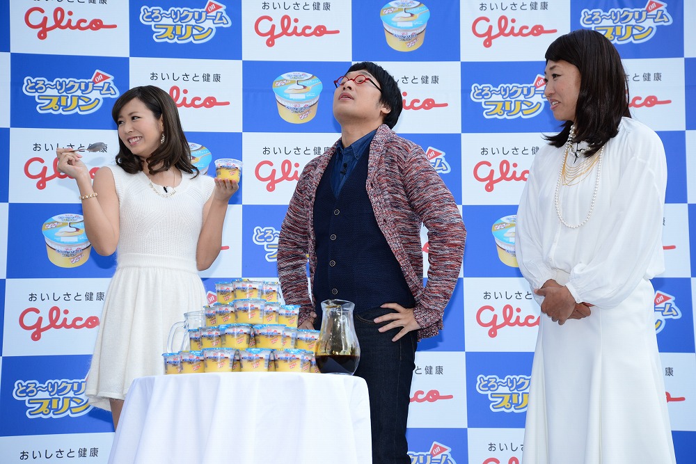 グリコ乳業「とろ~りクリームonプリン」のリニューアルを記念して、ゲストに岩田さゆりさん、南海キャンディーズの山里亮太さん、山崎静代さんを迎えてのイベントが10月31日(木)に都内にて開催された。