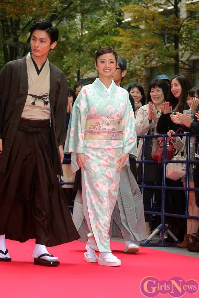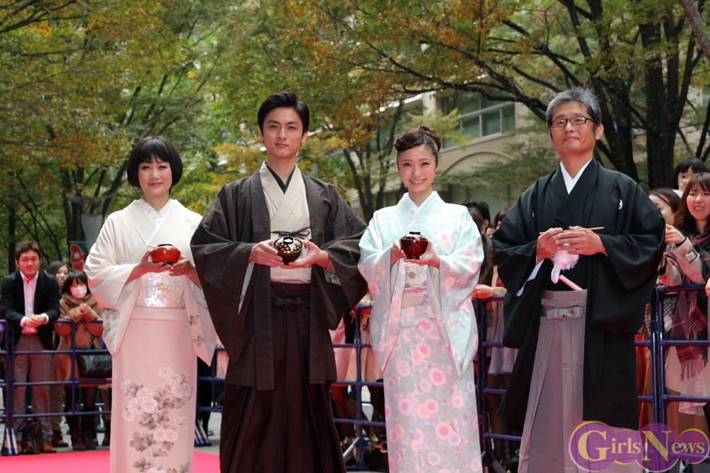 11月2日、映画『武士の献立』の完成披露試写会が、有楽町・丸の内ピカデリー1で行なわれ、出演者の上戸彩、高良健吾、余貴美子、そして麻原雄三監督が舞台挨拶に登壇した。