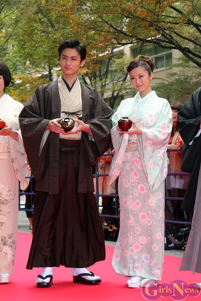試写会の前には、丸の内で行なわれた「ジャパンフードフェスタ2013」のオープニングセレモニーにも一同がスペシャルサポーターとして出席し、林芳正農林水産大臣と鏡開きを行った。