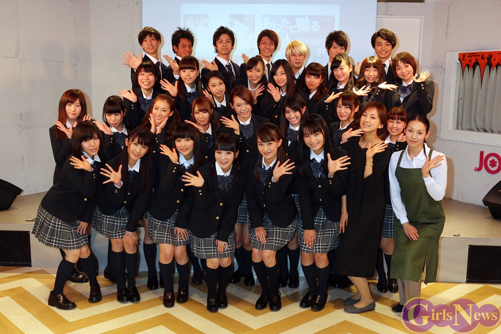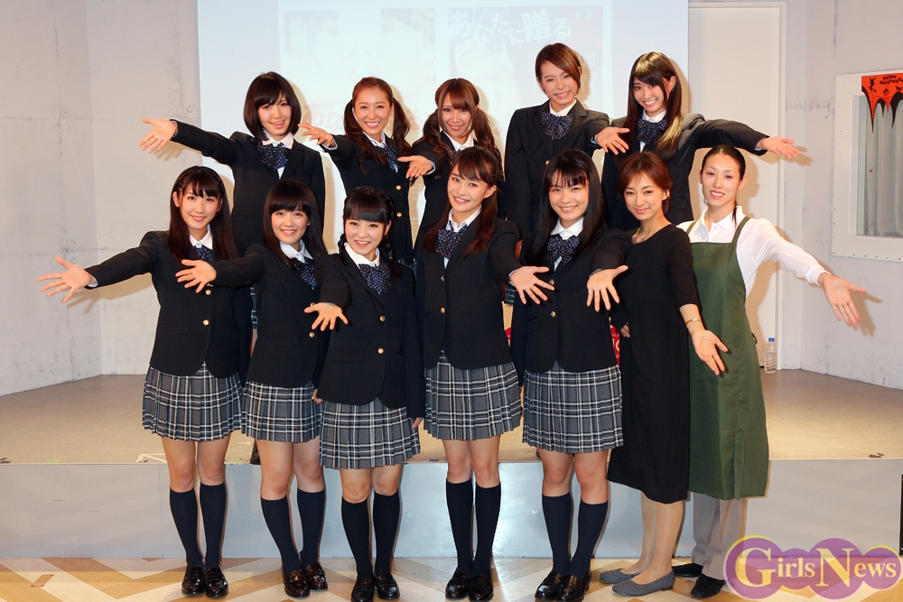 12月に上演される舞台『あなたに贈る×(キス)』の制作発表会見が、10月29日に原宿で行われ、ダブル主演の西条美咲と高部あいをはじめ、田中美晴、星名美津紀、小原春香、伊東愛、鈴木千絵里、瑠璃奈、坂口莉果子、梅宮万紗子他総勢男女32名の出演者と、演出の町田誠也氏が出席した。