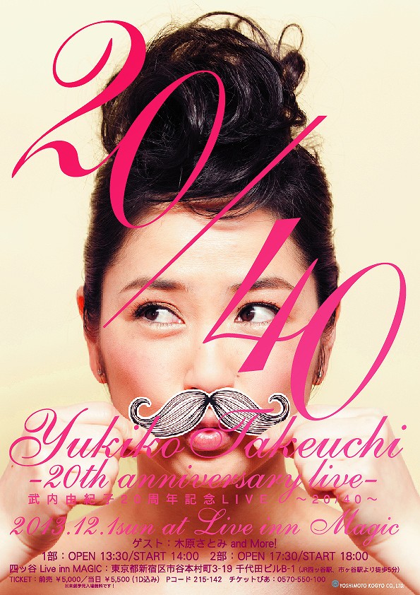 6月に大阪で開催され大盛況だった「武内由紀子20周年記念LIVE~20/40~」。70年代、80年代、そしてOPDの曲も満載のライブがついに東京でも開催!チケットはチケットぴあにて絶賛発売中!ゲストで元東京パフォーマンスドールのリーダー木原さとみさんの出演も決定!TPDの曲も歌唱予定とか!往年のファンにとってはもちろん、新メンバーで復活したTPDの新しいファンの方にも楽しんでもらえることは間違いなしだ!!