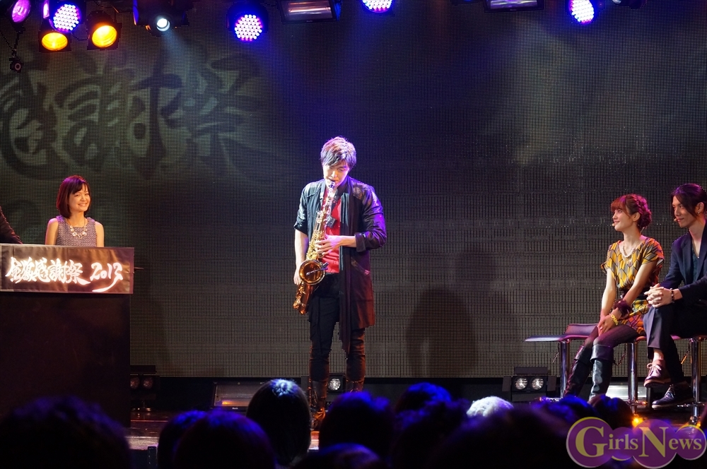 さらに、ファンへの感謝企画として、キャストそれぞれがプレゼントを用意。栗山航さんはこの日連動していたtwitterで募集した質問「今日誕生日の人」にちなんで、最近始めたというサックスで「HAPPY BARTHDAY」を披露。
