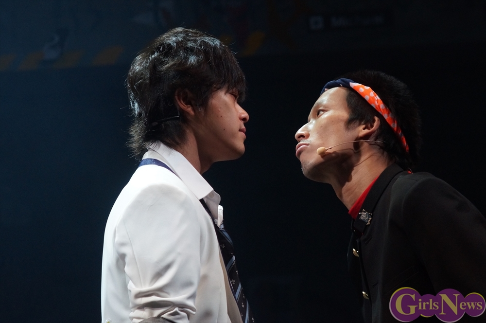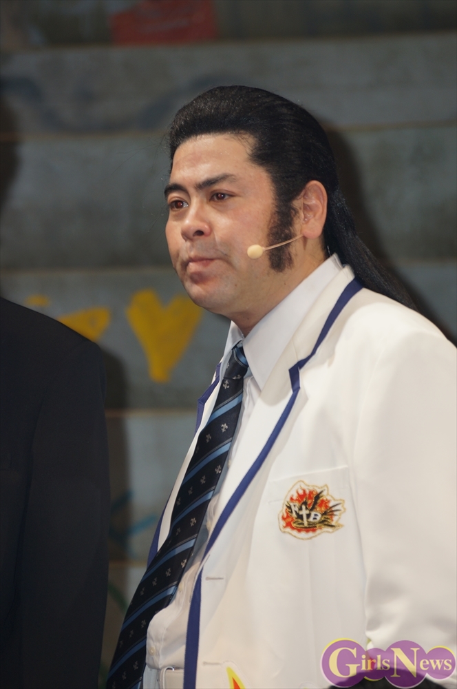 宮益坂わたる役・道玄坂クリス輝役の綾小路翔さんは「自分がお芝居をすることは全く想像できなかった世界で、はじめはどういうことなのかと思ってたんですけども、角界を代表する悪たちが集まるということを聞いてそれはやっぱり行かなくてはと思って、今こうして初日を迎えて和気藹々としてますけども、最初の頃は稽古場でつかみ合い・殴り合いだったりとかですね、本当にもうすごいぶつかりがあって、やっと今お互いを認め合って、この良き日を迎えることができたという風に思っております。自分は以前 週刊誌で偏差値39で載ったことがありますけど、今回は偏差値15という、もう我々にとっても前代未聞の世界に飛び込みます。とにかくこれから1ヶ月間、渋谷の偏差値を下げていきたいなという風に思っておりますので、皆さま是非応援をよろしくお願いします。」と、それぞれ意気込みを語った。