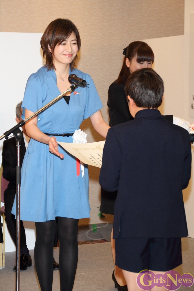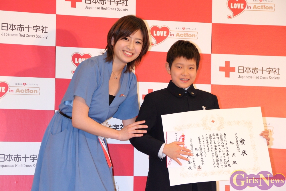 南沢奈央さんはゲスト審査員賞のプレゼンターを務め、「夕立に 白くかがやく 献血車」を応募した東京都の小学生がゲスト審査員賞を受賞し表彰状を授与した。
