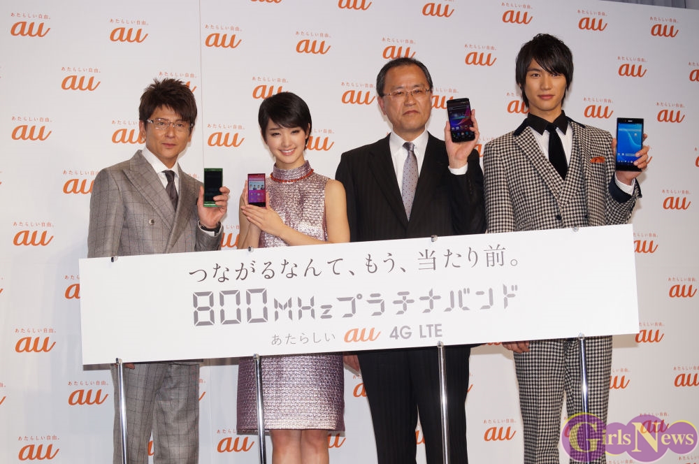 1月22日、「au発表会 2014 Spring」が都内で行われ、CMキャラクターの剛力彩芽さんらが登場した。