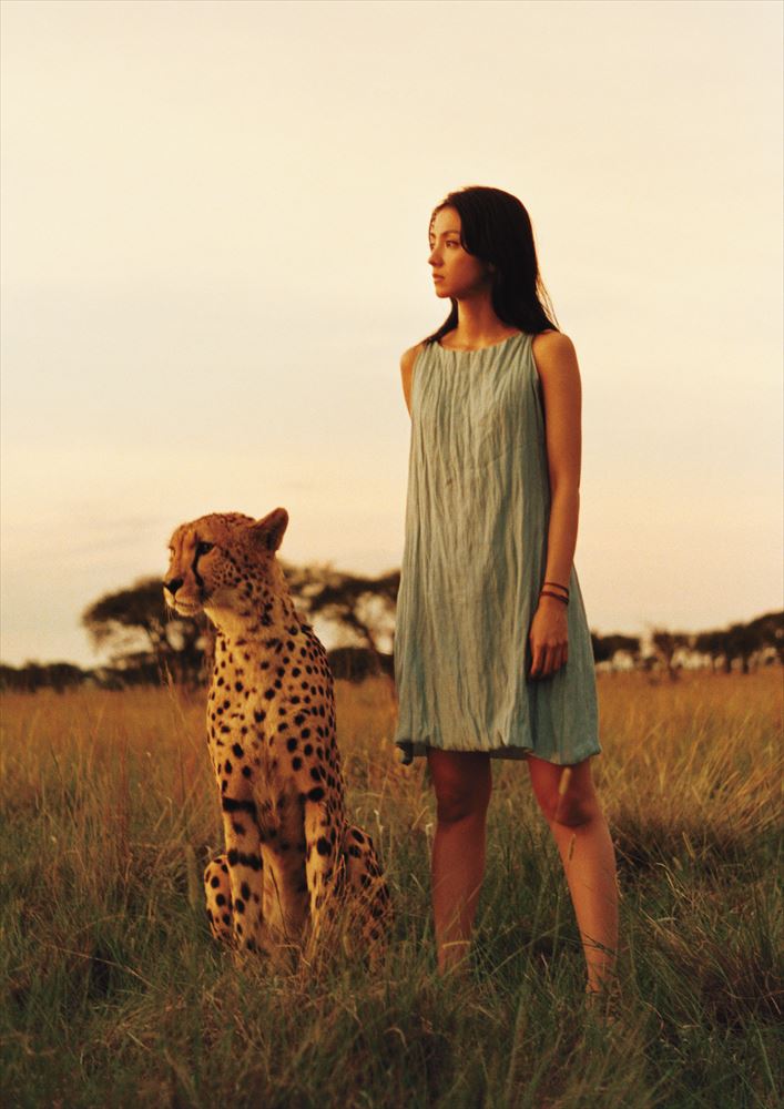 満島さんと共演したチーターは、幼少期から調教され、調教師の指示には従うものの、本来は獰猛な肉食獣。そんなチーターに対して満島さんは、まったく臆することなく近づき、調教師の指導のもと、コミュニケーションをとりはじめた。その後、撮影が進むにつれ、その親密さは増していく。「毛が固くて、なでてると、ツヤが出てくるんですよ。グラフィックの撮影の時はよく、私が肩を舐められました。」と語る満島さん。「人も、動物も、みんな一緒。チーターだからなにってわけじゃない。相性はあるけど(笑)」という満島さんの想いが、きっとチーターにも通じたのだろう。調教師も「こんなに短期間で、完全にコミュニケーションできる人はほとんどいなかった。アジア人の女性としては初めてだ!」と、チーターと満島さんの親密な様子に、大変驚いていた。