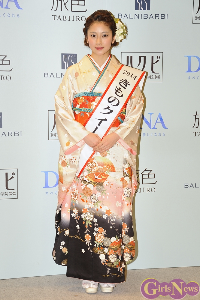 2月15日、日本最大級のきものミスコン「きものクイーンコンテスト2014」が浅草公会堂で行われ、23歳の小澤美里さんがクイーンに輝いた。