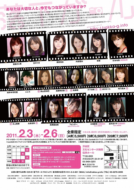 2/3(木)から渋谷区文化センター大和田・伝承ホールにて、重盛さと美 吉木りさ 杉本有美などの人気アイドルによる舞台『落下ガール』が上演される。
