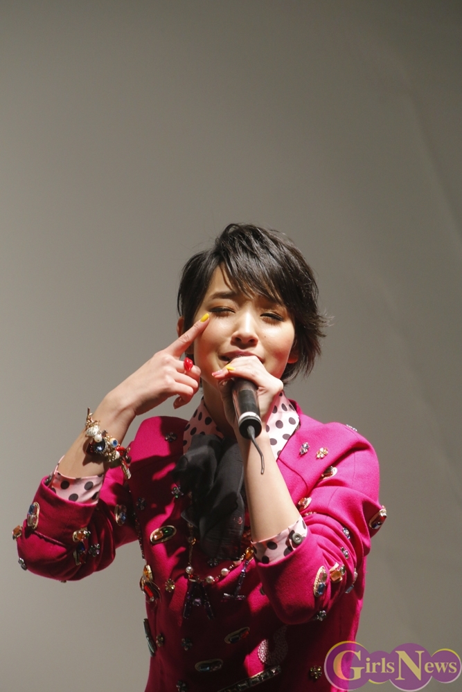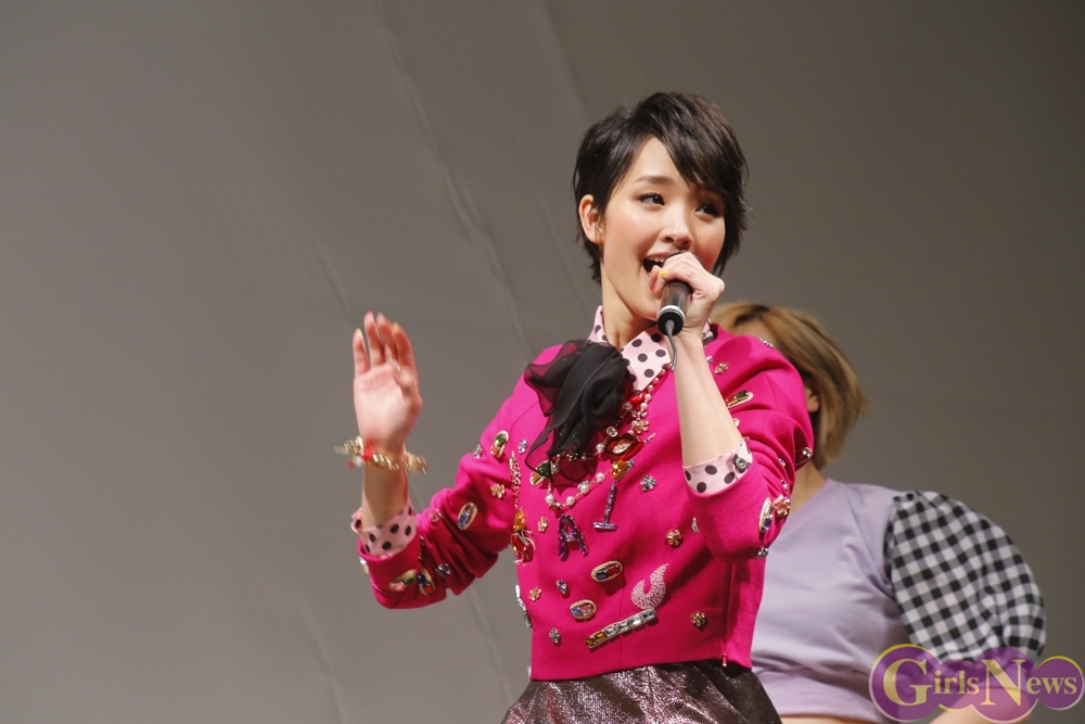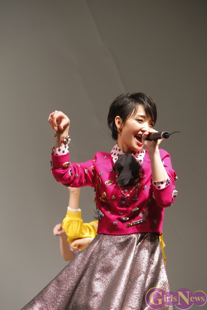 会場に集まったファンからは、剛力彩芽さんの愛称である「ゴーちゃん」コールや「カワイイ!」の声援で湧き上がる中、2ndシングルのカップリング「up!! up!!」を披露。
