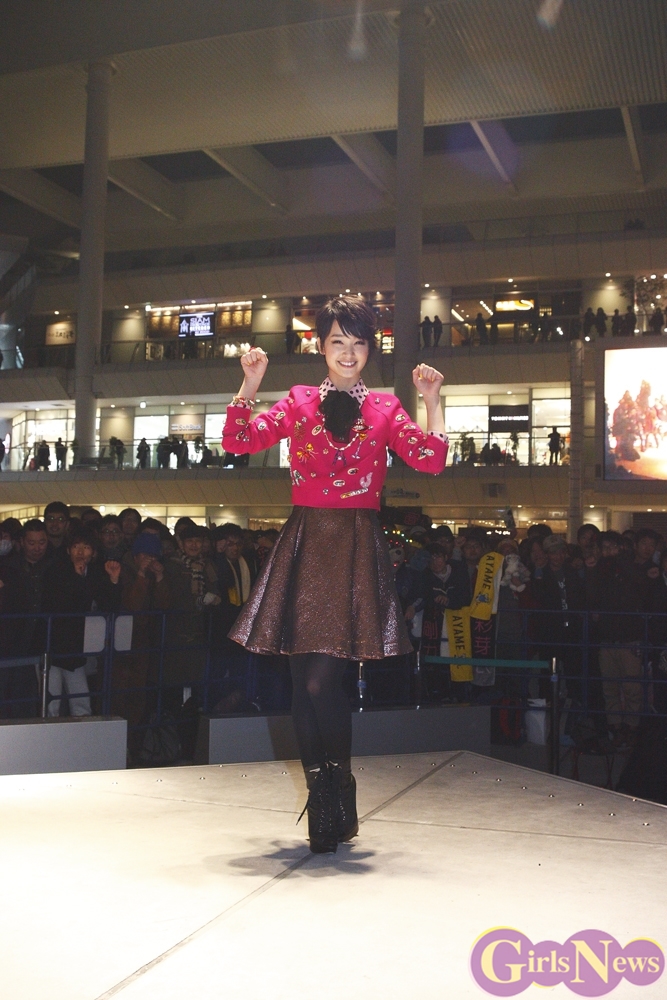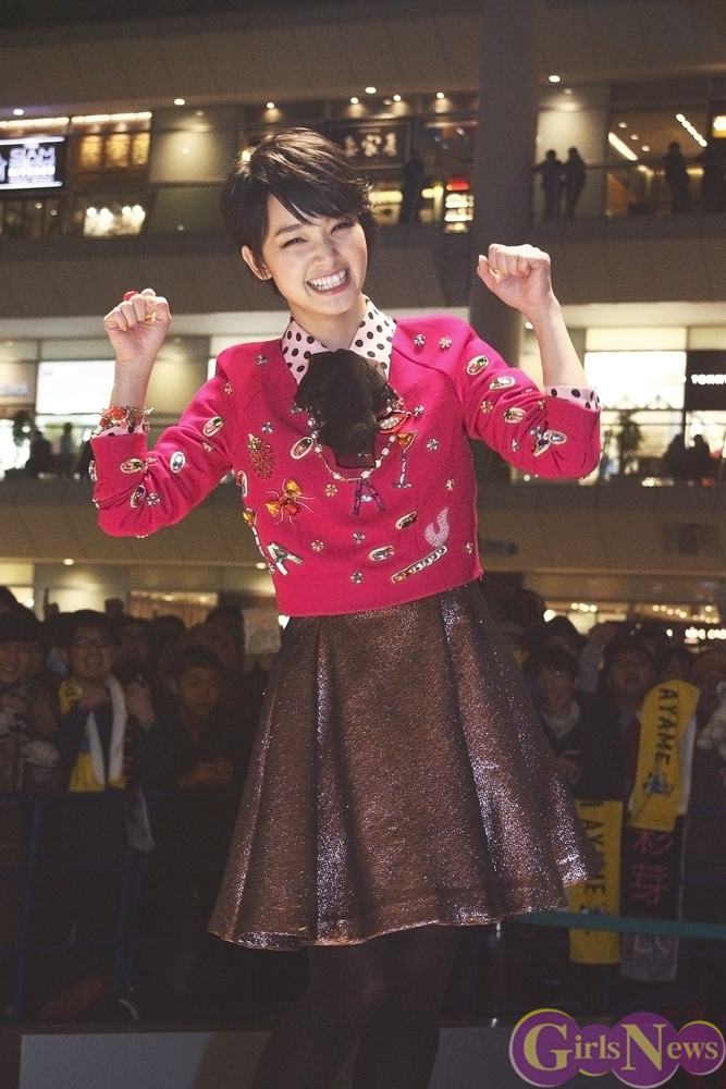 剛力彩芽さんは「デビューの時もここでやらせていただいたのですが、またこんなに集まっていただけると思っていなかったので本当に幸せです。またこうしてみなさんの前でイベントができると思ってなかったので本当に嬉しいです。」と満面の笑みでファンに感謝。