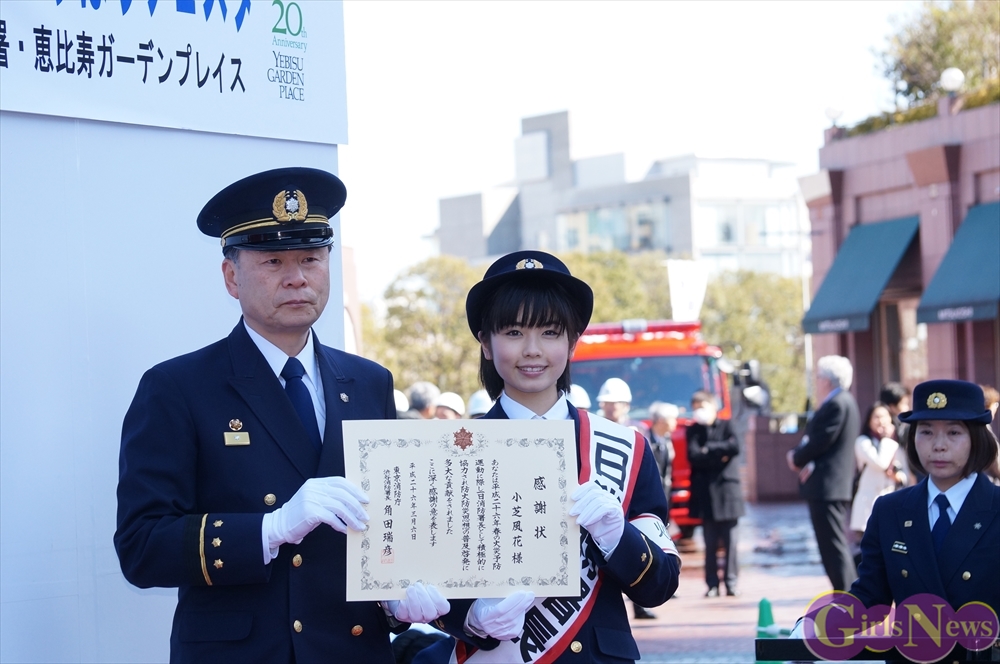 3月6日、平成26年春の火災予防運動の一環として、恵比寿ガーデンプレイスで「えびすしょうぼうフェスタ」が行われ、女優の小芝風花さんが渋谷消防署の一日消防署長に委嘱され消防演習を行った。