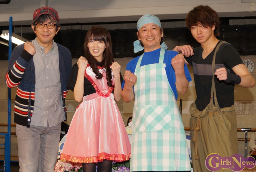八坂沙織さんは「皆様に支えていただいてるというのがすごく大きくて、最初は不安ばかりで、不安要素がいっぱい出て、でもそこを(演出の)中島さんが拾ってくださって、私がやるユ・ミリは“ちょっと不安要素が強いユ・ミリちゃんにしよう”と言ってくださって、本当にいろんなことを1個1個支えていただいてるなと思います。」と感謝の気持ちを語る。