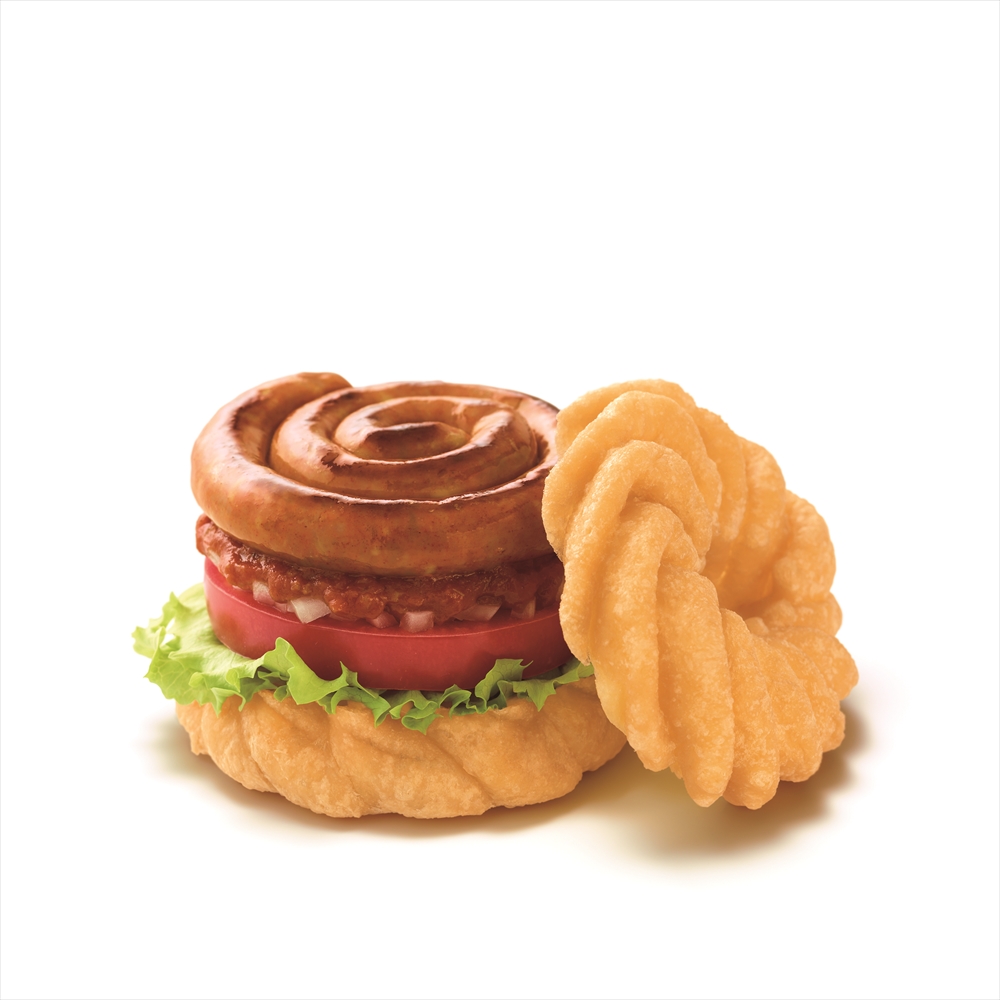 約5年ぶりとなる「MOSDO!」の第3弾新商品として、“モスとミスドのとりかえっこ”をテーマにモスバーガーの「ライスバーガー」とミスタードーナツの「フレンチクルーラー」を交換し、モスバーガーからは「モスのフレンチクルーラー ぐるぐるチョリソ」と「モスのフレンチクルーラー ベリーショコラ」、ミスタードーナツからは「ミスドのライスバーガー 坦々牛焼肉」と「ミスドのライスバーガー あん&カスタード」を期間限定で発売する。