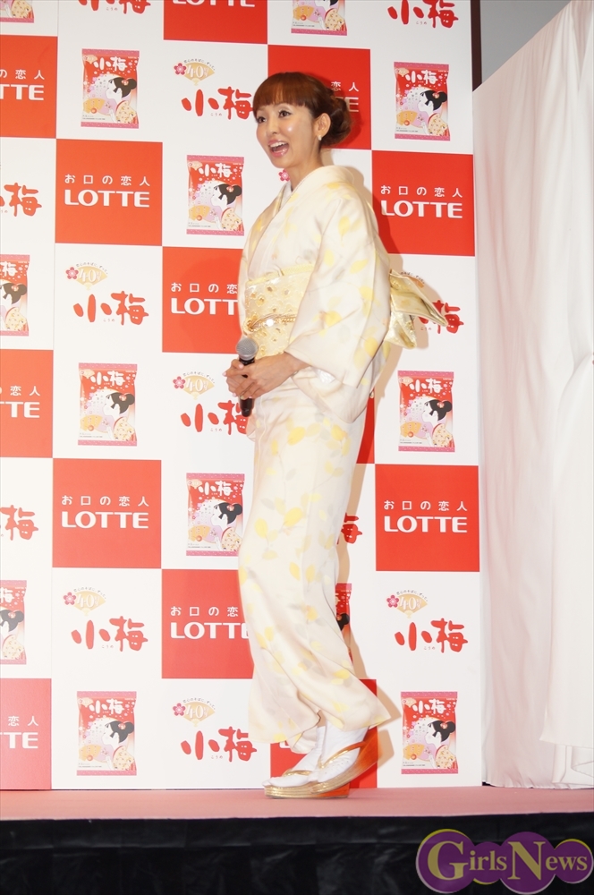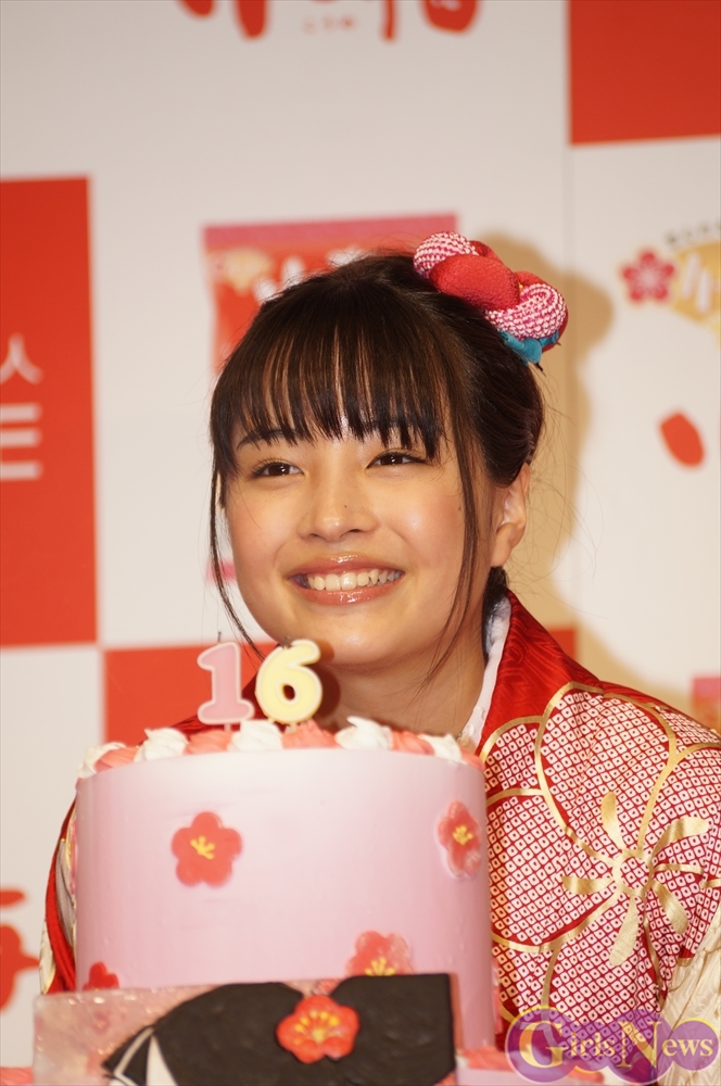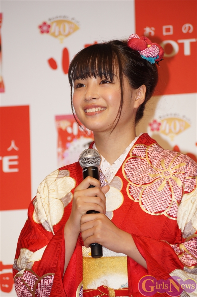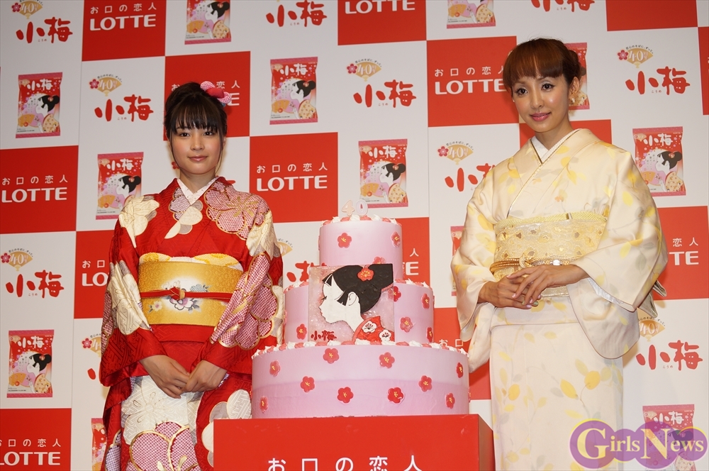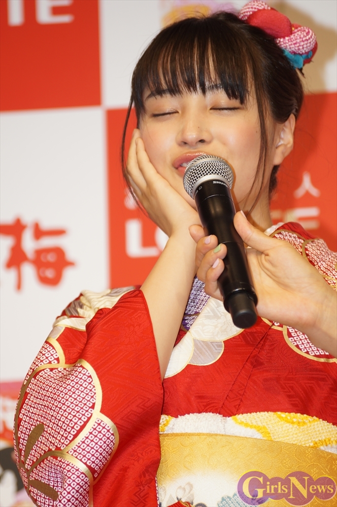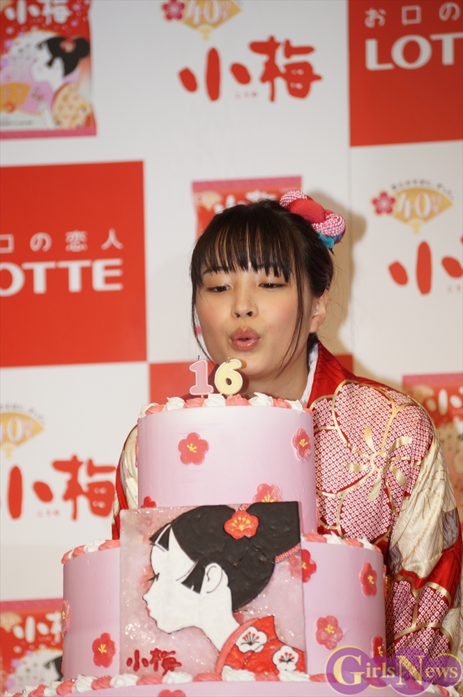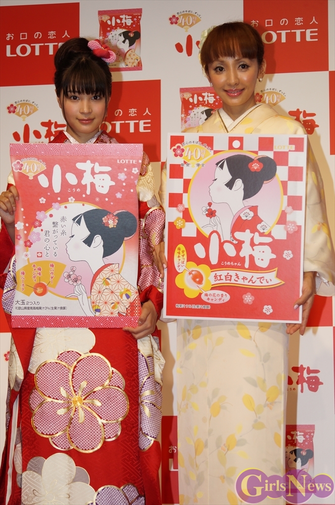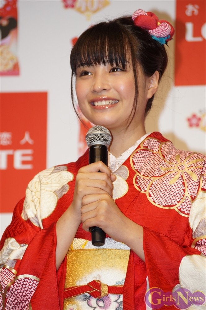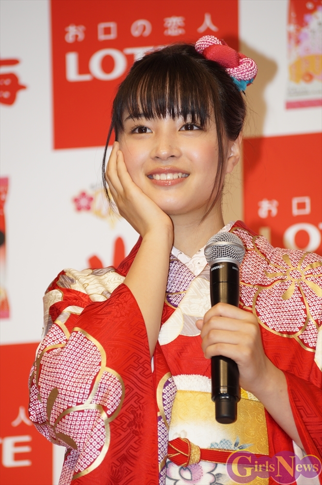 6月17日、ロッテ『小梅』40周年記念『小梅の恋叶えプロジェクト』発表会が行われ、同プロジェクトのアンバサダーを努める人気急上昇中の若手女優 広瀬すずさんが小梅ちゃんのキャラクターをイメージした赤い着物姿で登場した。