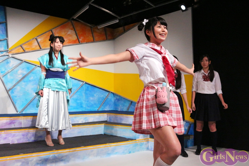 ゲネプロでは、幕が開いたばかりの場面では緊張が感じられたキャストも、次第に本番さながらの熱のこもった演技を演技を見せてくれた。客席の関係者の反応からも十分な手応えを感じたのか、ゲネプロを終えたキャストの表情はみな明るかった。18人の少女たちが入り乱れる賑やかな舞台だが、それぞれのキャラクターの役割がはっきりとしていて立場が判りやすく、キャストたちの個性と相まって、どの役も愛しおしくてたまらない魅力を放っていた。空を飛ぶ列車が登場するファンタジー溢れる物語は、宮沢賢治の「銀河鉄道の夜」や、松本零士の「銀河鉄道999」を彷彿させ、子供の頃に誰もが描いた空想の世界を思い起こさせるだろう。