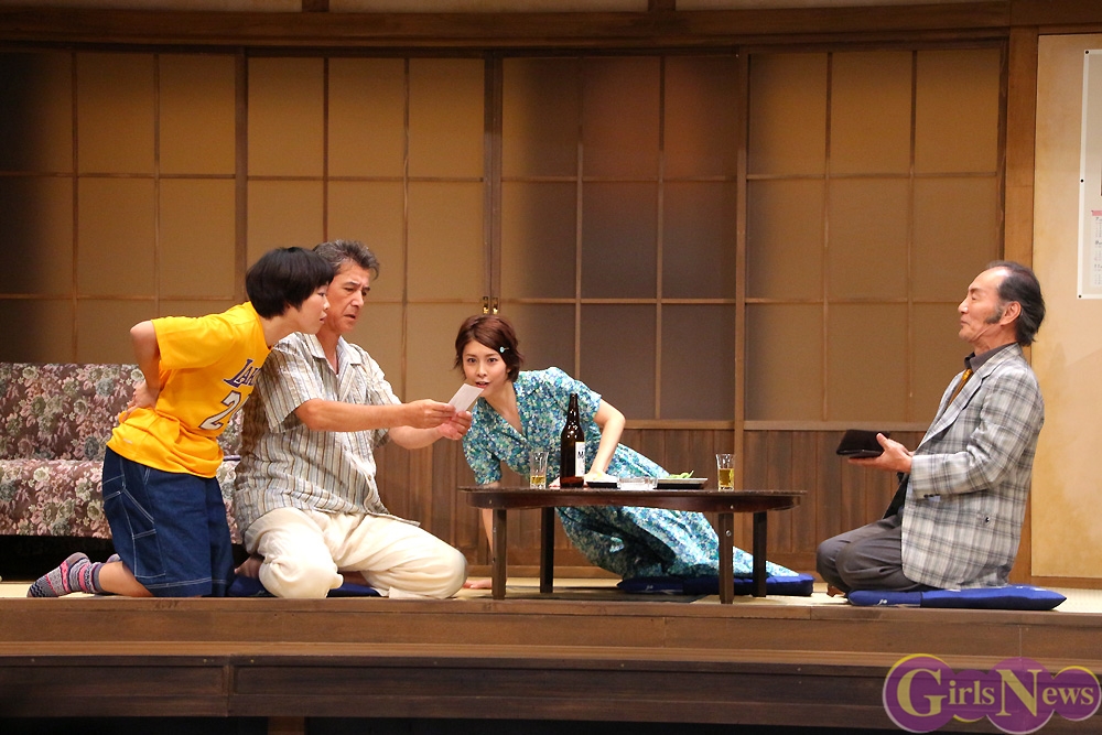 自分の父親よりも年上の恋人のことを家族に打ち明けようとして、ウソと誤解から騒動を巻き起こしてしまう長女あゆみを演じる竹内結子さんは、三谷幸喜さんから「竹内結子さんとは前に映画の完成披露試写会の時も台風が近づいていて、今回もまた台風が来ている。相性が悪いですね。」とジョークを飛ばされると、「三谷さんから相性が悪いと言われると、この先どうなるやら心配ですが、初挑戦の初舞台に頑張って挑みたいと思います。」と意気込んだ。