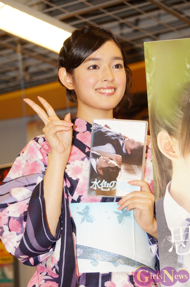 8月16日、映画「思春期ごっこ」スピンオフDVD『水色の楽園』(バップ)発売記念イベントがタワーレコード秋葉原店で行われ、未来穂香さんと青山美郷さんが涼しげな浴衣姿で登場した。