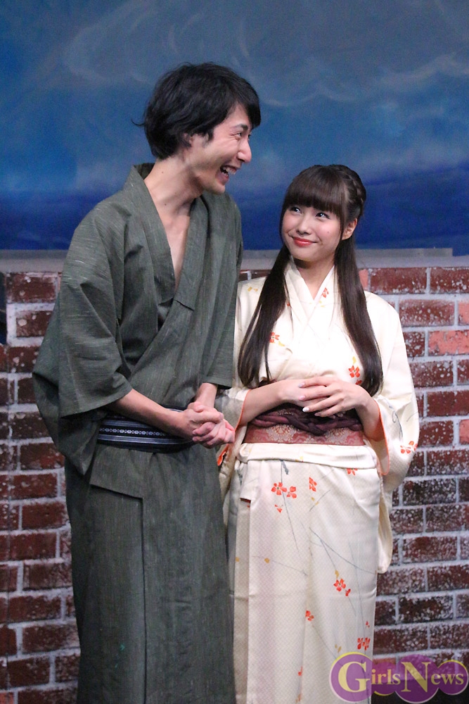 主演で大富豪のご令嬢・星谷雅美を演じる秋山ゆずきさんは、「みんなに助けられて初日を迎えられました。一人じゃ何もできないと痛感しました。今回はわりと大人の女性の役で、しかも初めて男前の男装の役もやってます。自分ではけっこうかっこ良くできていると思います!」と自信をのぞかせた。