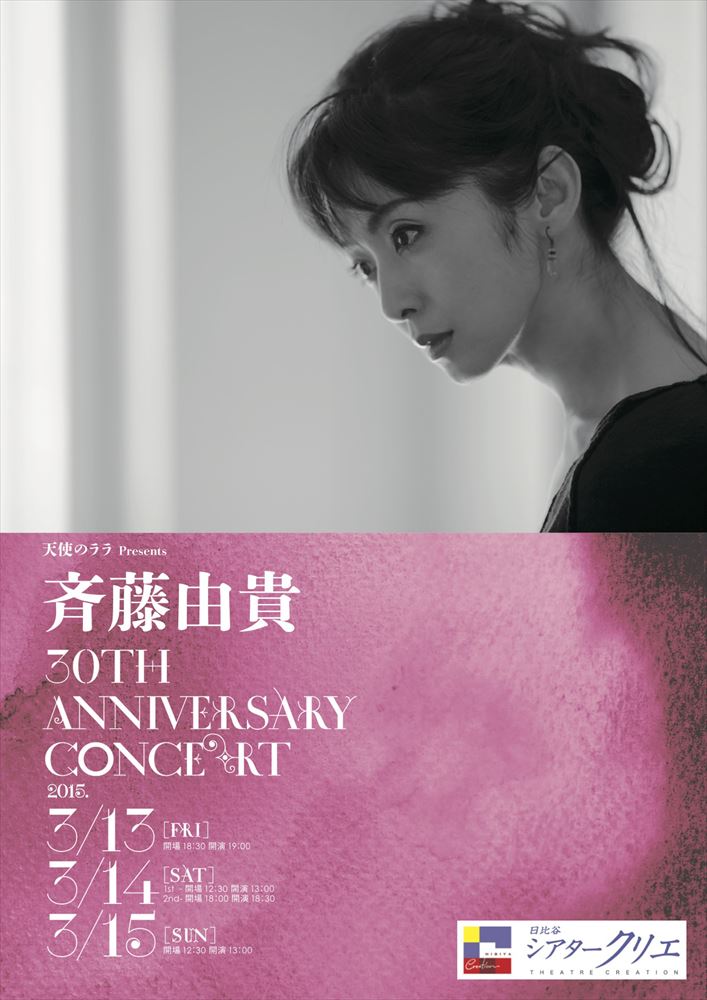 2015年3月13日より15日まで、女優・歌手の斉藤由貴さんの30周年コンサートが日比谷・シアタークリエにて行われることがわかった。