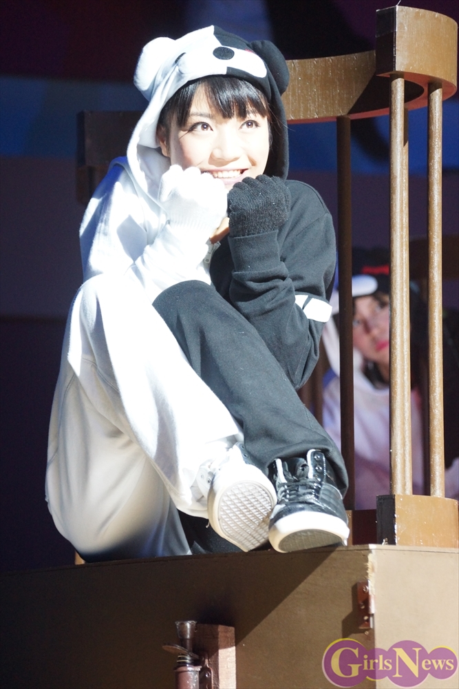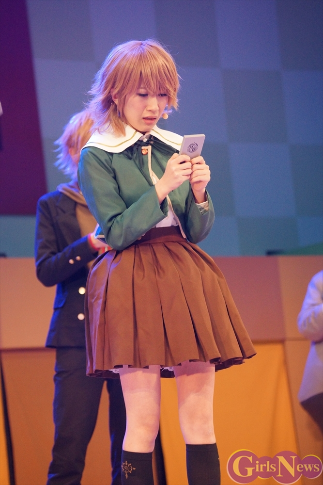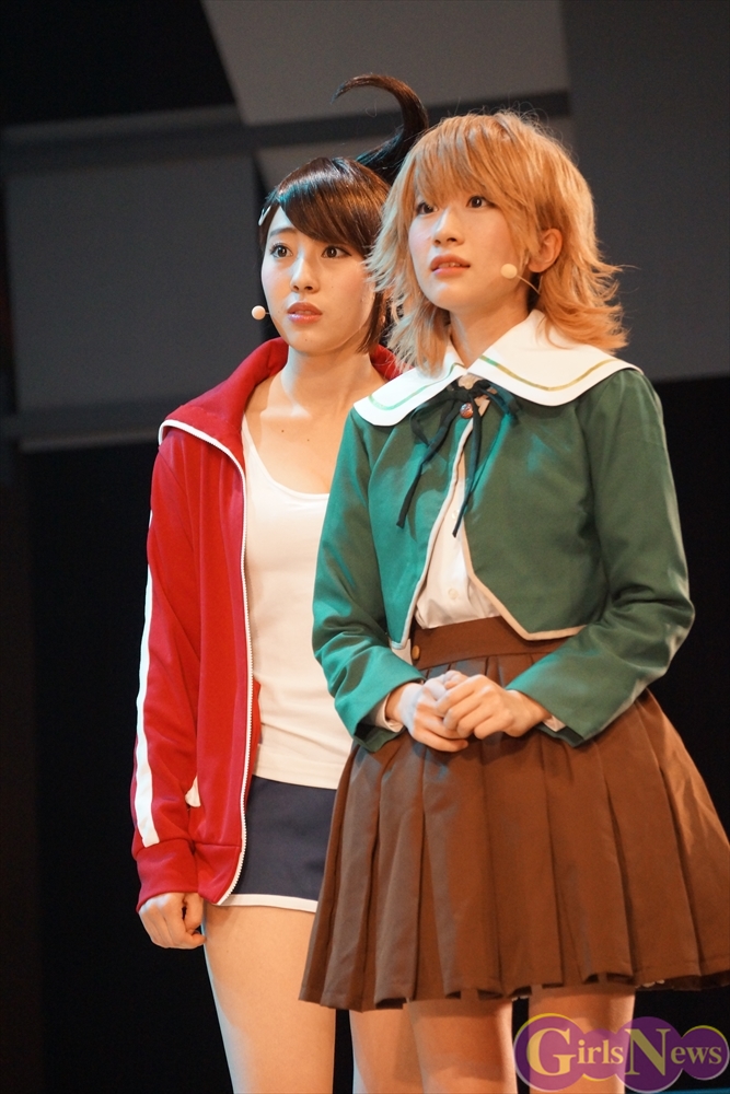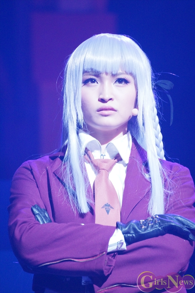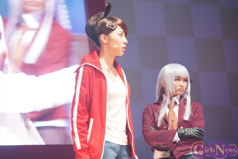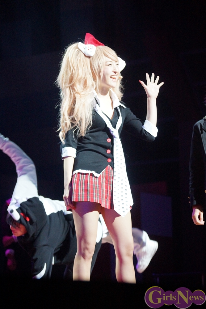 超高校級のアイドル・舞園さやかを演じる田中日奈子さんは初舞台にも関わらず、キュートな制服姿で舞台という未知の領域を見事にこなしていた。