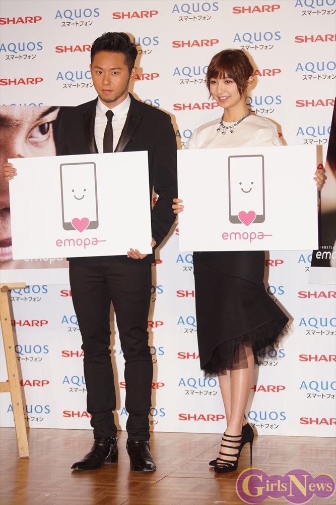11月6日、AQUOSスマートフォンWEBプロモーション「emopa(エモパー)」告知イベントが都内で行われ、水泳の北島康介選手と、女優の篠田麻里子さんが登場した。