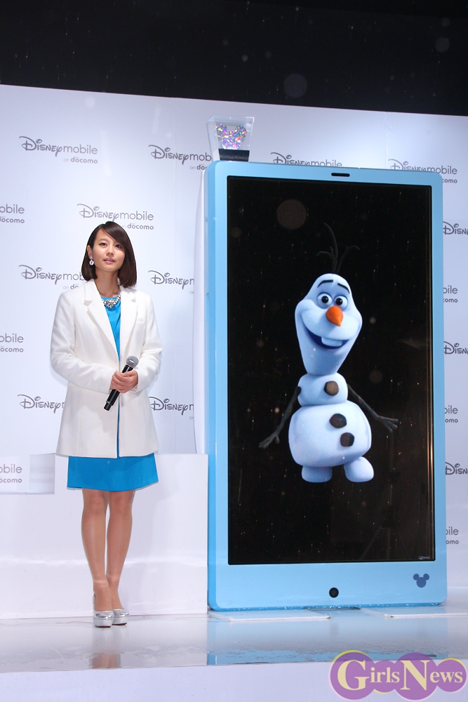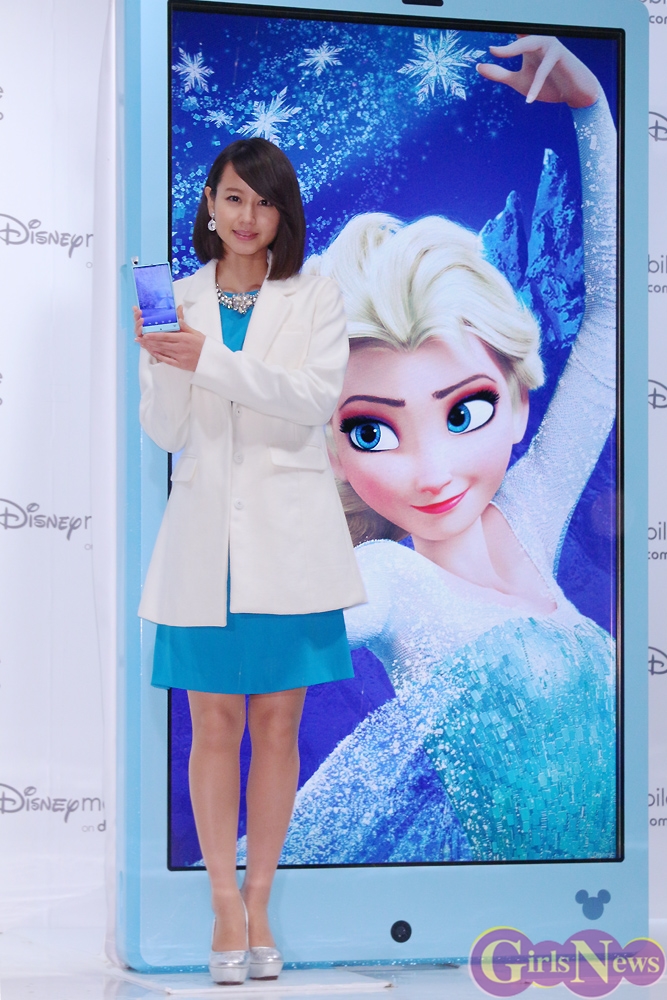 堀北真希さんは「アナと雪の女王」を意識した青いドレスでステージに現れ、商品の特徴であるスマホピアスを装着するとディズニーキャラクターのアニメーションが表示されるパフォーマンスを体験した。