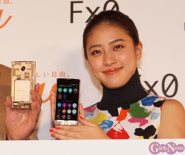 フォトセッションでは池澤あやかさんは「Fx0」のスマートフォンを持つと、auのオレンジのカラーのネイルにも視線が注がれた。