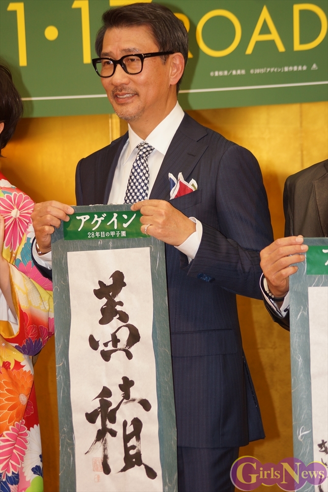 1月7日、映画「アゲイン 28年目の甲子園」完成報告会見と大人の親子試写会が都内で行われた。