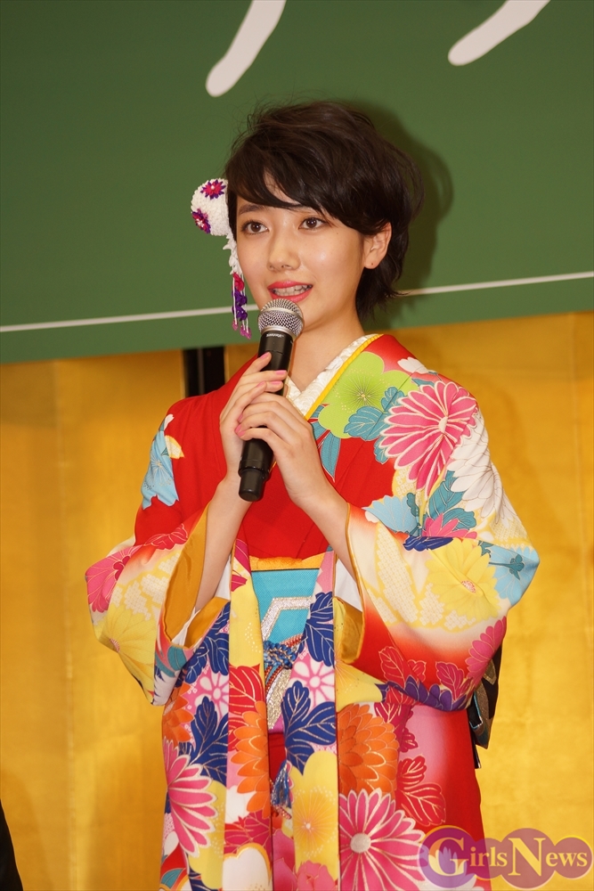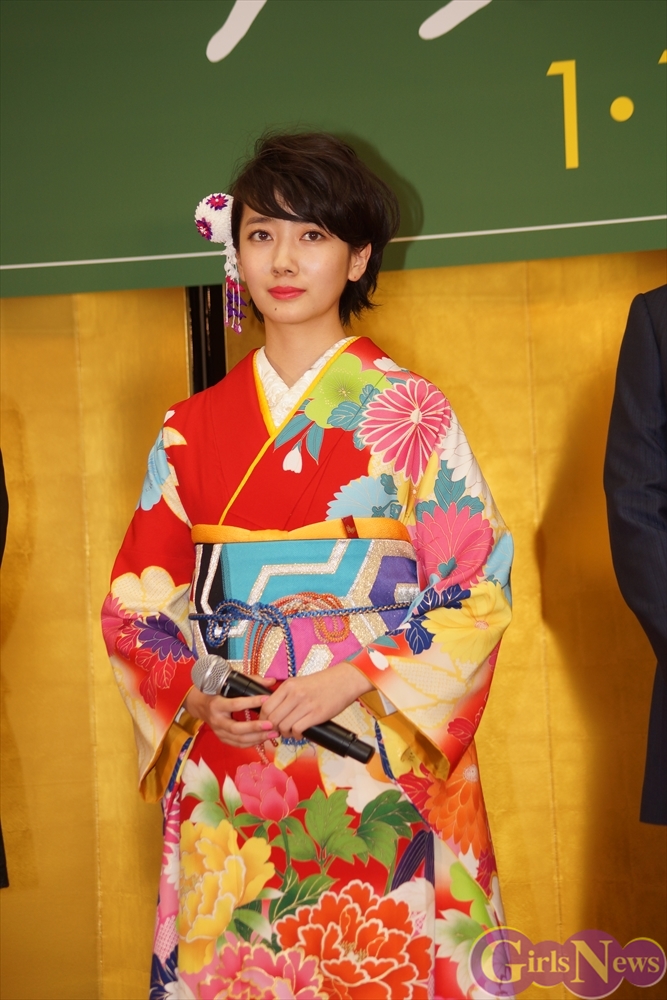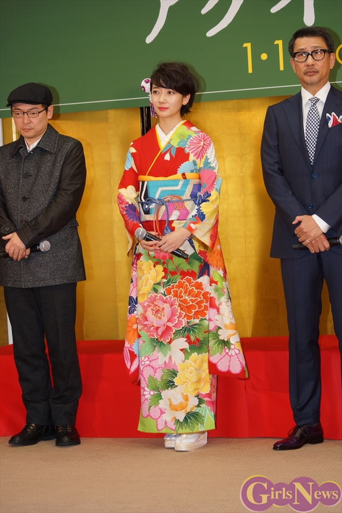 この日、男性キャストはスーツ姿で、女優の波瑠さんは艶やかな着物姿で登場。