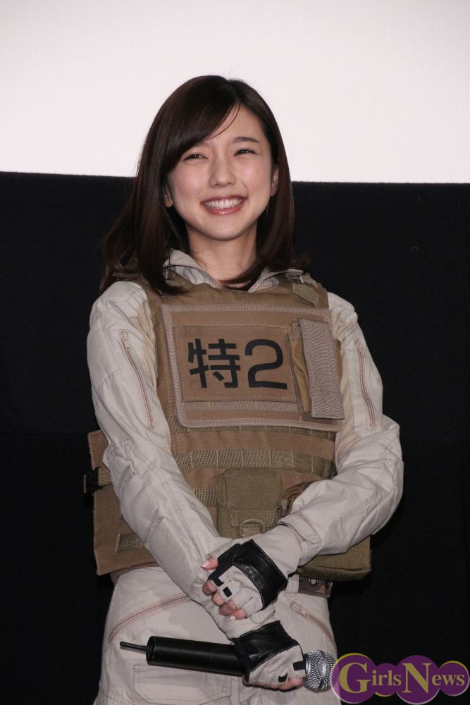 最終章を迎えた心境を尋ねられた真野恵里菜さんは、前回の舞台挨拶の時は、ちょっと寂しさがあったけれど、今は5月の長編に向けて楽しみな気持ちのほうが大きい。この隊員服を久しぶりに着て、若干ゆるくなったのが嬉しいです。明は丸かったなと見返して思いました。」と笑った。