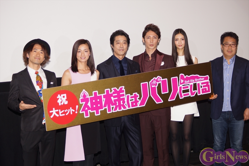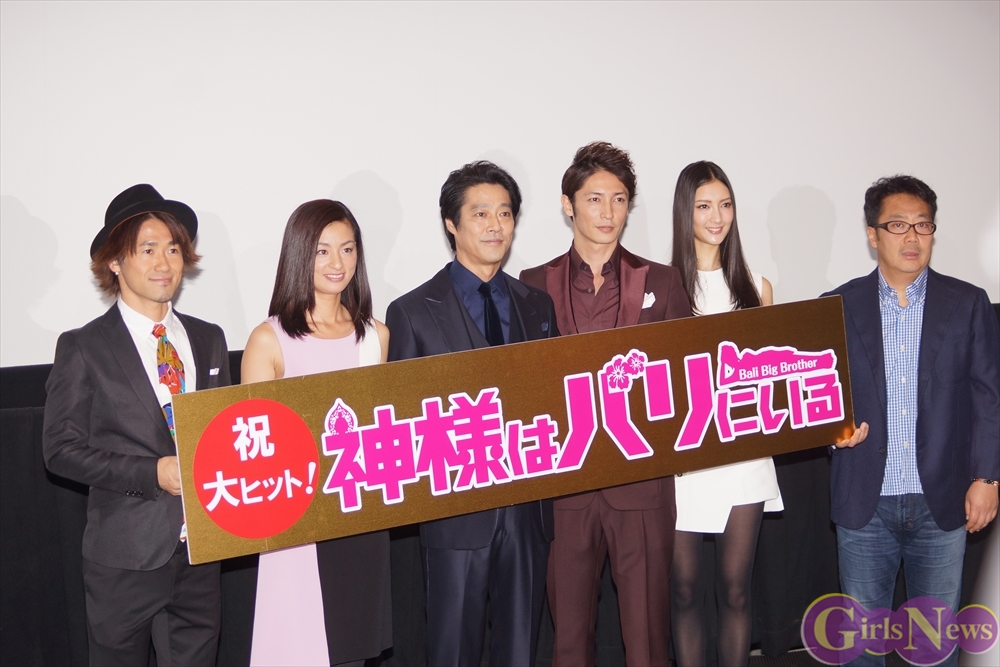 1月17日、映画「神様はバリにいる」の初日舞台挨拶が新宿バルト9で行われ、堤真一、尾野真千子、ナオト・インティライミ、菜々緒、玉木宏、李闘士男監督が登壇した。
