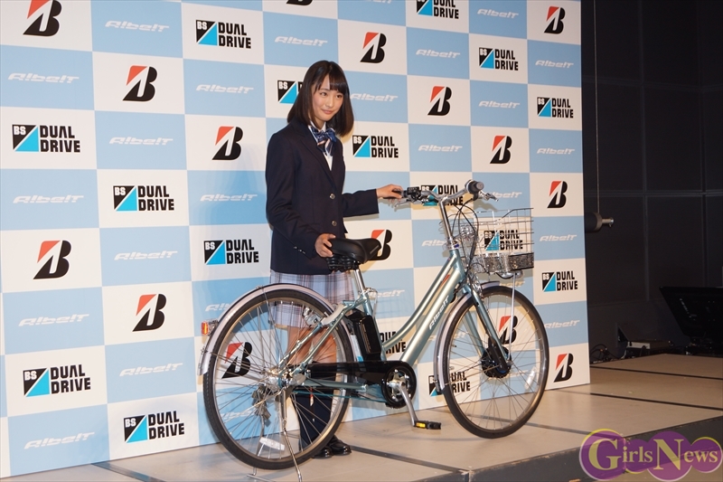 1月19日、“国内初”ベルトドライブを採用した通学用電動アシスト自転車「アルベルト e」の新製品発表会が都内で行われ、イメージキャラクターを務めるモデルで女優の大友花恋さんが制服姿で登場した。