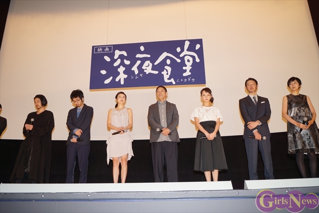 TVシリーズから出演しているオダギリジョーさんは「(松岡監督と)普段飲みながら“深夜食堂、次どうやろうか”と話してるんですけど、その過程を踏みながら映画ができて、今日初日を迎えられるというのが、すごく感慨深かったです。ダラダラ朝までずっと飲んでるあの時間が、ちょっとでもこの作品のためになってたんであれば、すごく嬉しく思っております。」と語っていた。