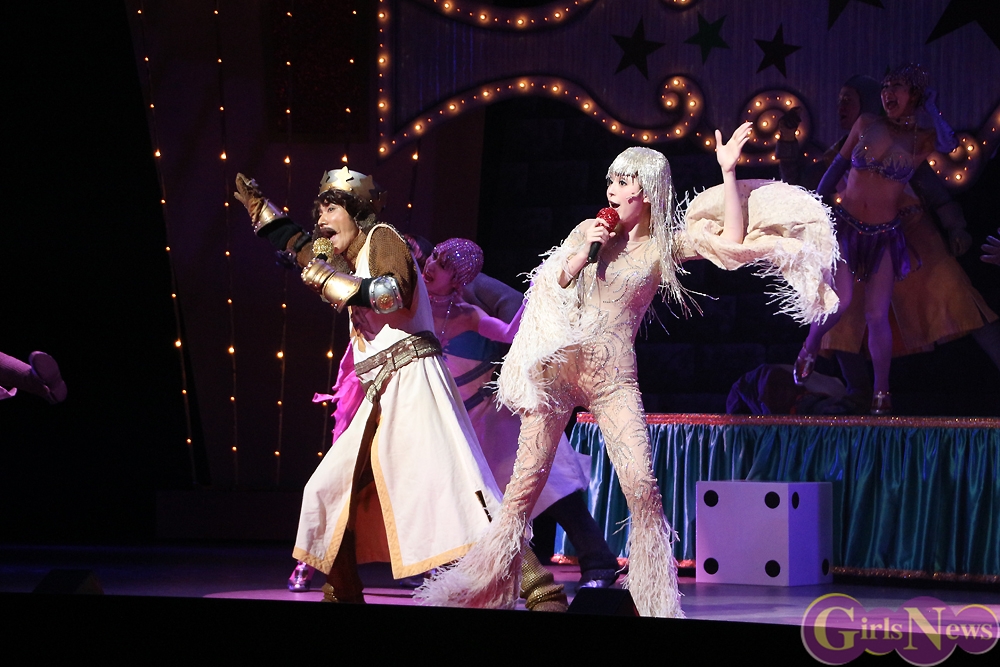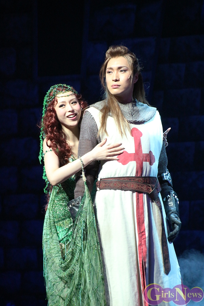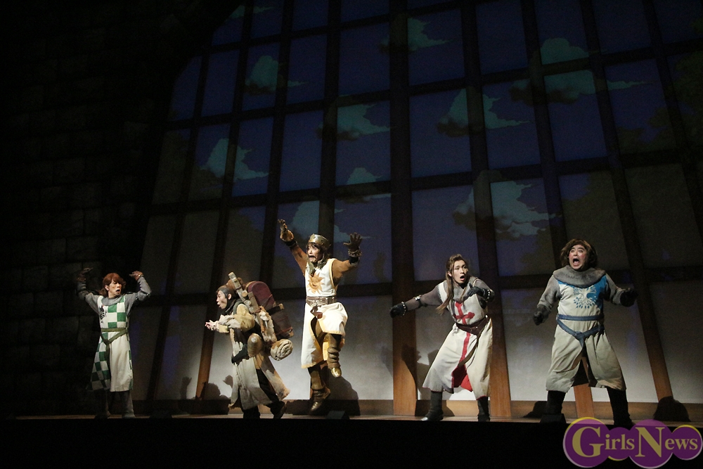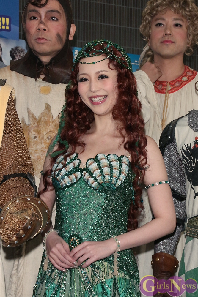 主演のアーサー王を演じるユースケさんは「今は緊張してないですけど、緊張したらいつもみたいにテキーラをあおって、ステージに飛び出します。」と意気込んでみせたが、マギーさんから「一滴も飲めないですけどね。」と突っ込まれて、報道陣を沸かせた。