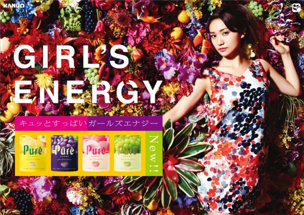 グミのジューシー感アップとともに、パッケージデザインも一新されたピュレグミ。さらに新イメージキャラクターに『大島優子』さんを起用し、『キュッとすっぱいガールズエナジー、ピュレグミ』をメッセージとして発信していくという。