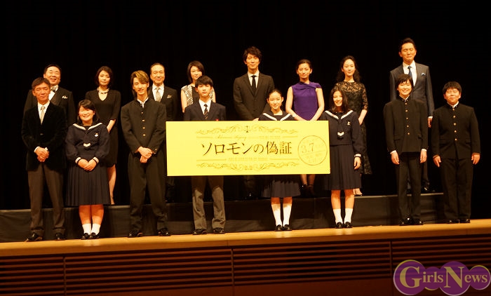 2月23日、映画「ソロモンの偽証 前篇・事件」の完成披露試写会が有楽町・東京国際フォーラムにて行われ、主演の藤野涼子さんら主要キャスト15名と成島出監督が登壇した。