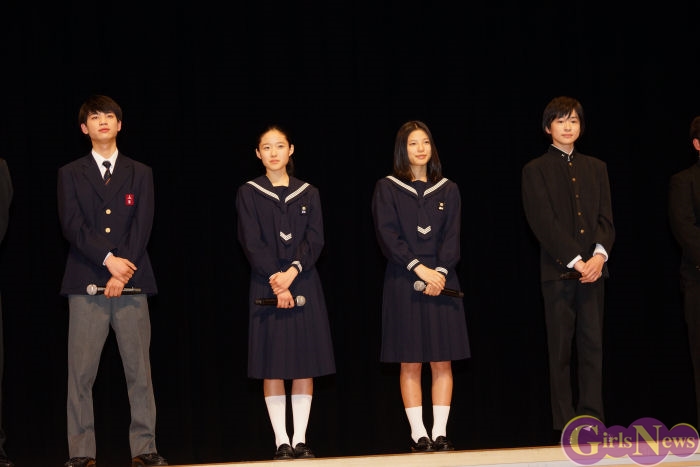 主演の藤野涼子さんは、「こんなにたくさんの”傍聴人”の方がいらっしゃるとは思っていなかったので、とてもうれしく思っています」と訪れた5000人の観衆に驚いた様子。物語の鍵を握る三宅樹理を演じたE-girls・石井杏奈さんは「今回の前篇では、(友人として作品中のキーパーソンとなる)松子がいることで強くいれる樹理の姿や、松子への不器用な愛情表現を見ていただけたらいいなと思います」と自分なりの見どころをPRした。こうした中学生キャストの立派な挨拶に、担任役を務めた黒木華さんも「久しぶりに会った生徒の皆さんがすごく成長していて、映画の中の先生をしていたことがすごく昔に思えた」と成長に目を細めていた。