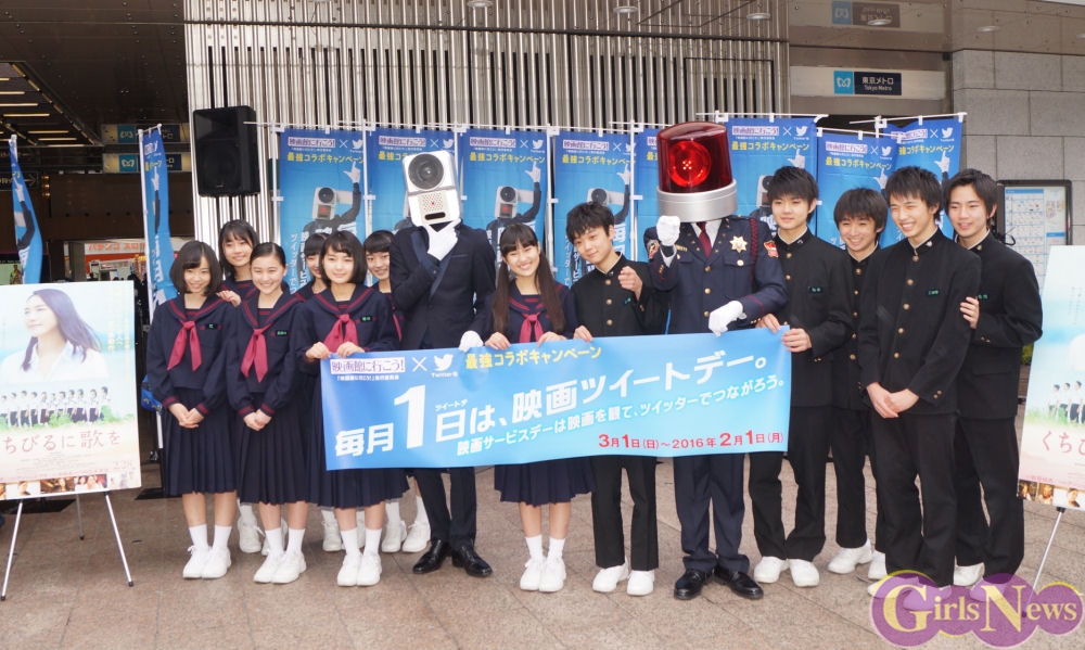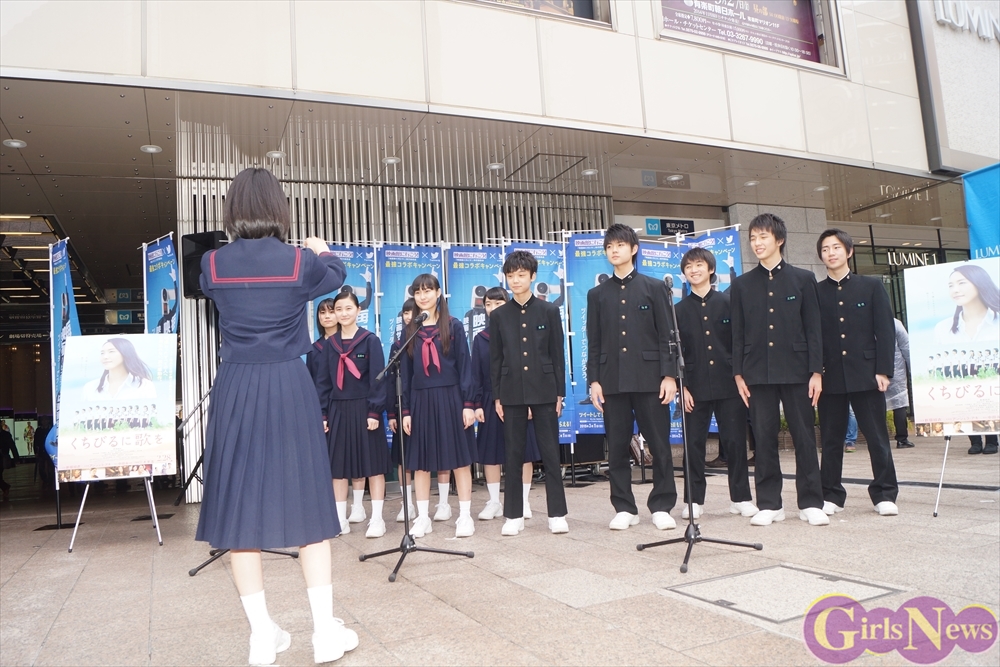 3月1日、映画「くちびるに歌を」「映画ツイートデー」キャンペーンオープニングイベントが有楽町マリオン前広場で行われ、映画「くちびるに歌を」の中五島中学合唱部の合唱部員を演じた恒松祐里、下田翔大、葵わかな、柴田杏花、山口まゆ、佐野勇斗、室井響、朝倉ふゆな、植田日向、高橋奈々、狩野見恭兵、三浦翔哉の12名が登場した。