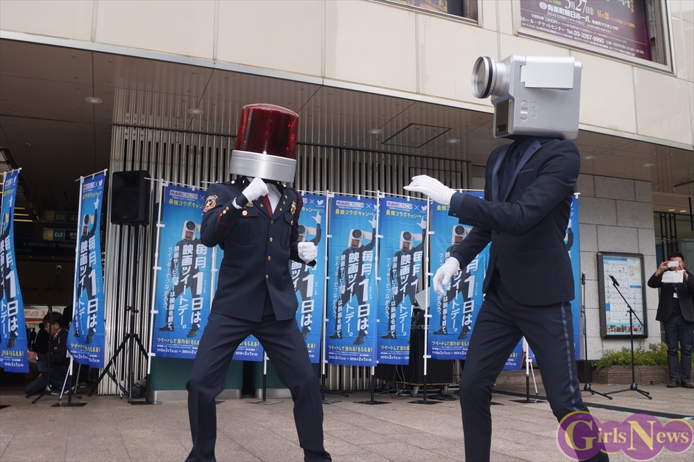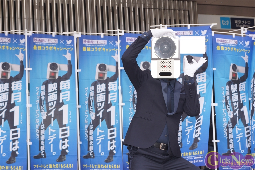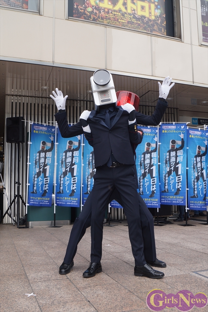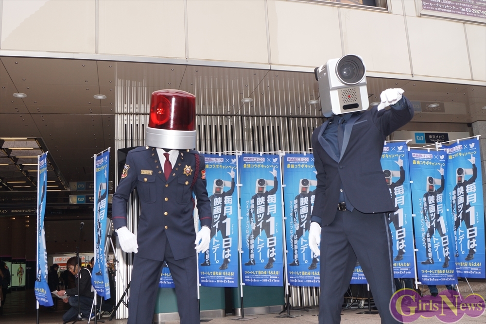 また、「映画ツイートデー」初日ということもあり、映画館でお馴染みのカメラ男とパトランプ男も登場し会場を盛り上げた。