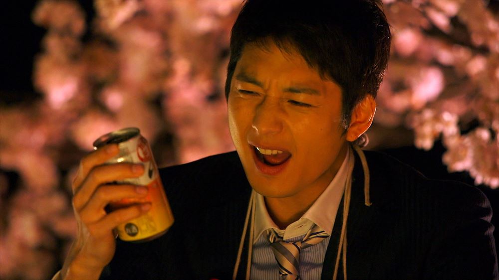 向井さんはバスの中での撮影。会社帰りに最近通い始めたボクシングジムに向かうところで、会社の同僚に遭遇。お花見への執拗な誘いに最初は抵抗していた向井さんも、ついには新しいクリアアサヒの魅力に負けて一緒に行くことに。夜桜を眺めながらの楽しそうなシーンが印象的だ。