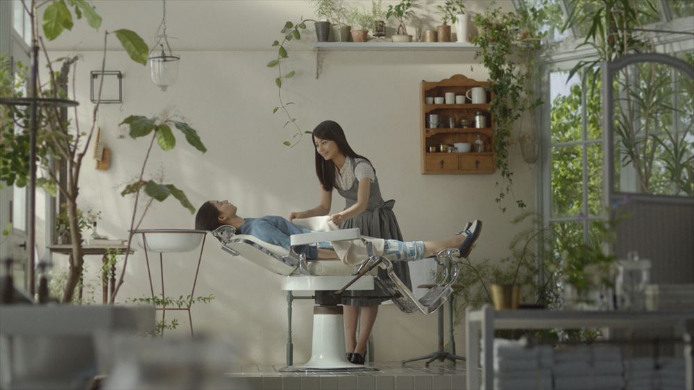 新CMは、前回に引き続き「絹もおどろく髪」がテーマ。郊外にある「いち髪サロン」の設定。このお店は、驚くほど髪が綺麗になると評判。店主である堀北さんのもとに新たなお客様が訪れ、「いち髪」を試すと、評判どおり「驚くほど綺麗になった髪」に感動するというストーリーだ。春らしいやわらかな日差しの下、「どうしてきれいになりたいんだろうね」とつぶやく堀北さんとお客様の髪の美しさが印象的です。バックに流れる音楽も、髪が美しくなった余韻を感じられる、上品なイメージを演出している。