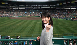 実際に甲子園球場で試合を見て「打った時の音や、グラブで球を捕る時の音。スタンドのどよめきなども間近に聞こえてきてとても新鮮でした。選手の皆さんも私も、何かに夢中になる時期だと思います。選手たちは野球に、私は芸能活動に熱中している。だから夢を追いかけたり何かに挑戦する気持ちはとてもよくわかります。また、私はチアリーダーをやっていたので選手のプレーはもちろんですが、スタンドでどんな応援が繰り広げられるのかにも、とっても興味がありました。」と感動した様子。