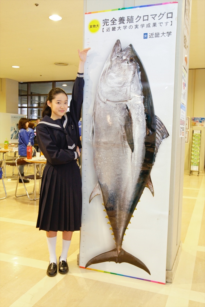 近畿大学は2年連続志願者数日本一を獲得しており、藤野涼子さんはそのことにかけ「私も『ソロモンの偽証』という映画に出るために1万人のオーディションをうけてきました。競争率の高い中を勝ち抜いていく不安や怖さは少しわかるような気がしています。年下の私が言うのは失礼かもしれませんが、みなさんも近畿大学入学を目指して頑張ってください」と入学希望者にエールを送る。