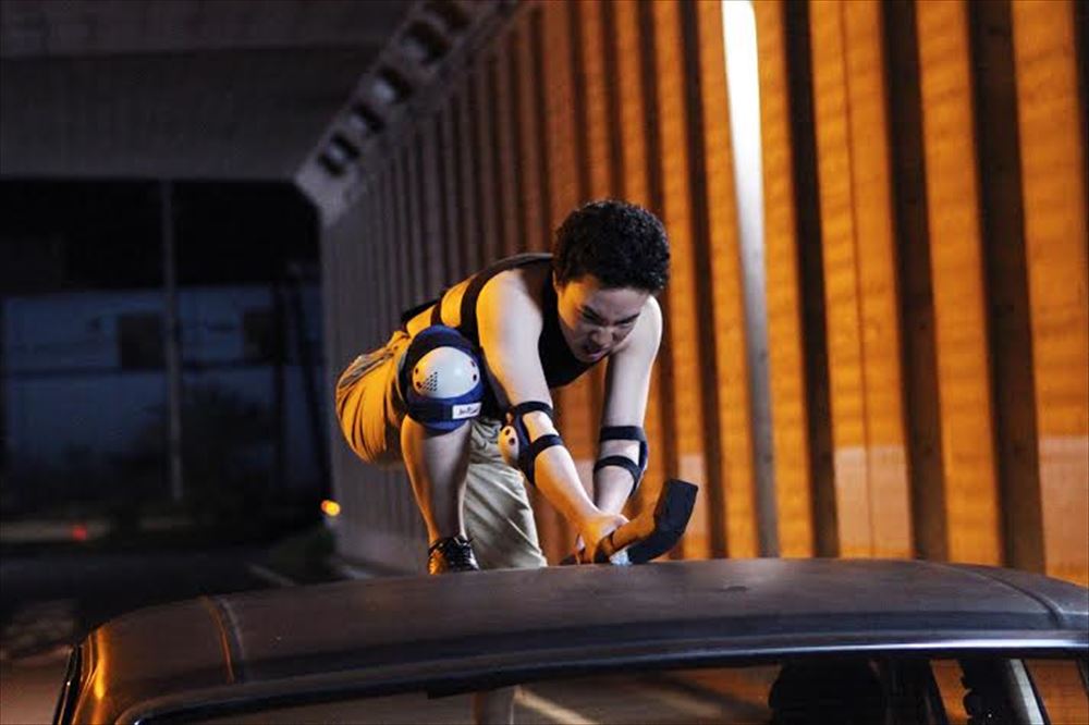 園子温監督が井上三太の人気漫画を実写化した『TOKYO TBIBE』で、ヒロインのスンミ(清野菜名)とともに大男たちに立ち向かい、アクロバティックなアクションで注目を集めた坂口茉琴。観客からは、小柄さと中性的な容姿ゆえ”小学生の男の子?”といった声があがる場面もあったが、実は現役の女子高生。アクションが大好きだという坂口は、世界で評価を受けるアクション俳優であり、『TOKYO TBIBE』でアクション監督を務め、戦劇者・坂口拓とは血縁にあたることでも有名な匠馬敏郎の元でトレーニングをしていたところを園監督に見出された逸材だ。