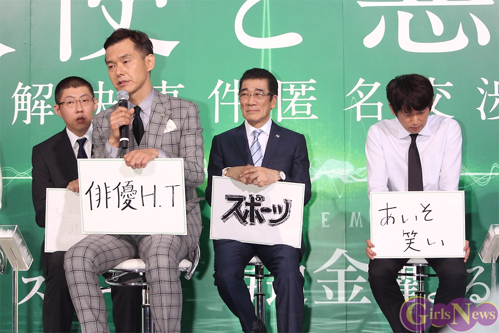 剛力彩芽さんが「渡部篤郎さんのはウソですよね。絶対に好きなはず。」と答えたものの、結局、“ウソではない”と渡部篤郎さんは答え「むしろハセの方が僕のことが苦手なんでしょう。怖いのかな。」と言うと長谷川朝晴さんは「目で僕に演出するんです。」と返し、再び睨まれると「今もやめておけと目で言ってるので、やめておきます。」と言って周囲を沸かせた。
